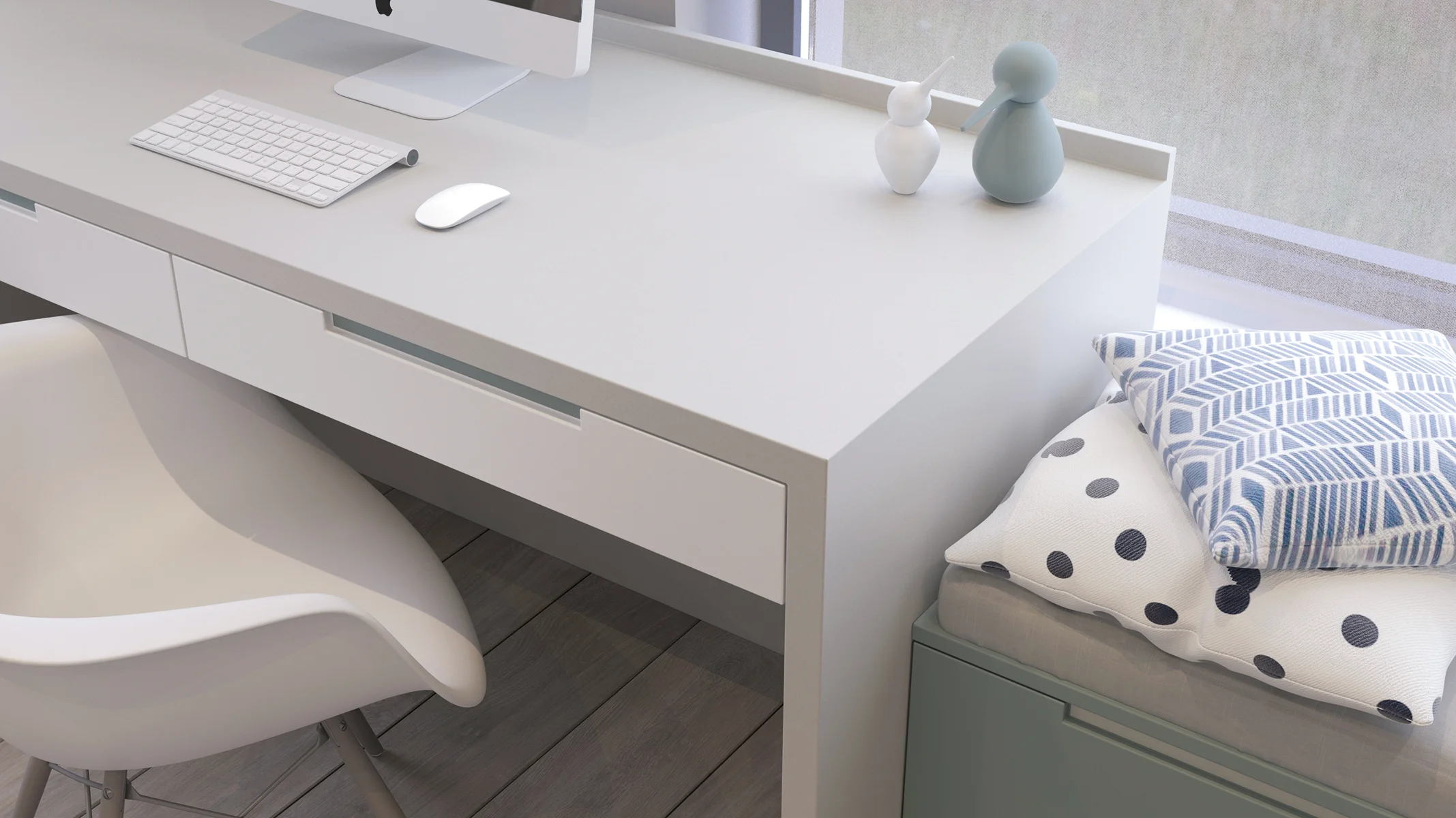 В данном декоре доминируют мягкие оттенки серого, гармонично интегрированные с белым цветом. Эта палитра вызывает ассоциации с цветом яичной скорлупы, создавая тактильно приятные ощущения. Серый камень, используемый в качестве фонового элемента, эффективно контрастирует с яркими акцентами мебели или экстерьерными деталями, что позволяет достичь гармоничного визуального баланса и подчеркнуть ключевые элементы дизайна.