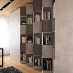 В декоре "Железный камень" искусно интегрируются металлические акценты и текстурные характеристики, присущие бетонным материалам. Гармоничное сочетание светлых и темных оттенков серого спектра различной интенсивности, а также выразительные текстурные паттерны делают этот материал универсальным для реализации разнообразных концептуальных решений в интерьере.